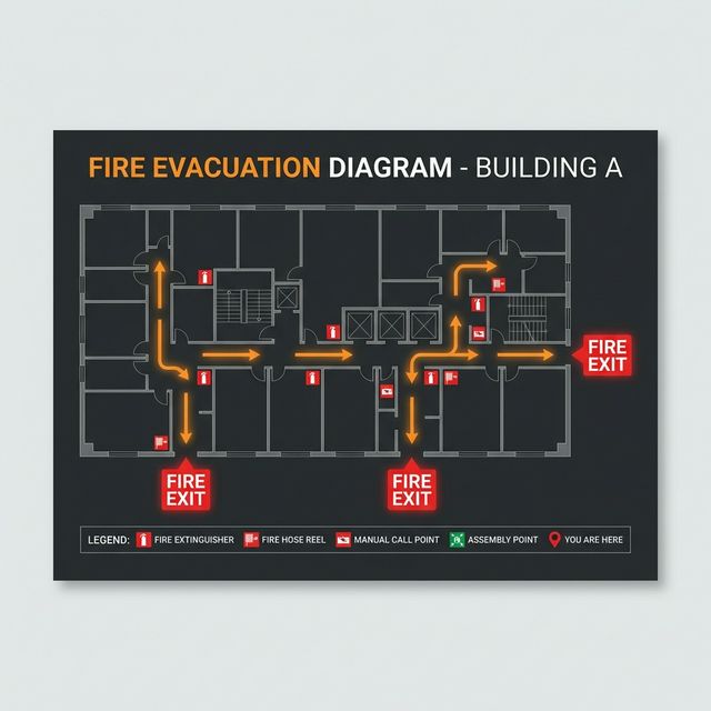 Clear, compliant, and easy-to-read diagrams tailored to your building layout. Our evacuation plans meet mandatory safety standards while providing critical orientation for occupants.